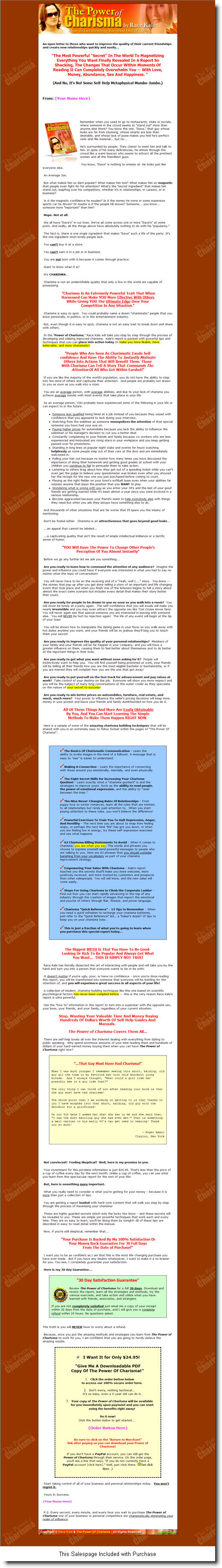 Empowering Your Sales With Charisma - Kale's report teaches you the secrets that'll make you more welcome, more positively received, and more trusted by customers and prospects than other salespeople. You will sell more, and the new sales will come easily.