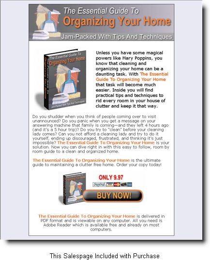 Unless you have some magical powers like Mary Poppins, you know that cleaning and organizing your home can be a daunting task. With The Essential Guide To Organizing Your Home that task will become much easier. Inside you will find practical tips and techniques to rid every room in your house of clutter and keep it that way.