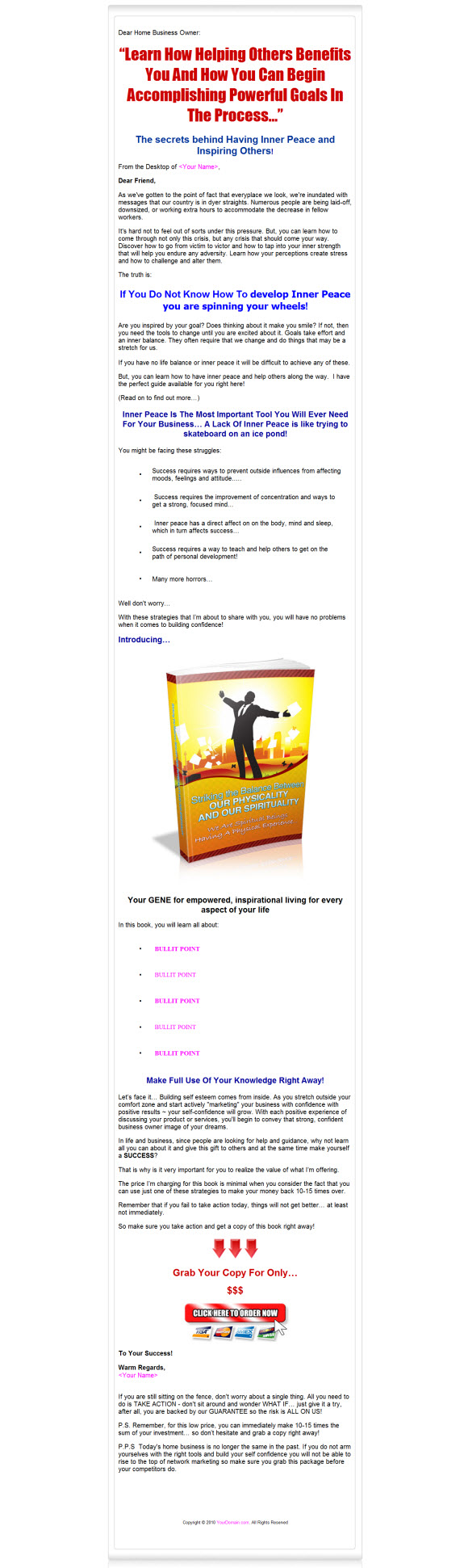 Self Development (PLR)Learn the secrets to self development through visualization and affirmation by taking advantage of the exclusive...
