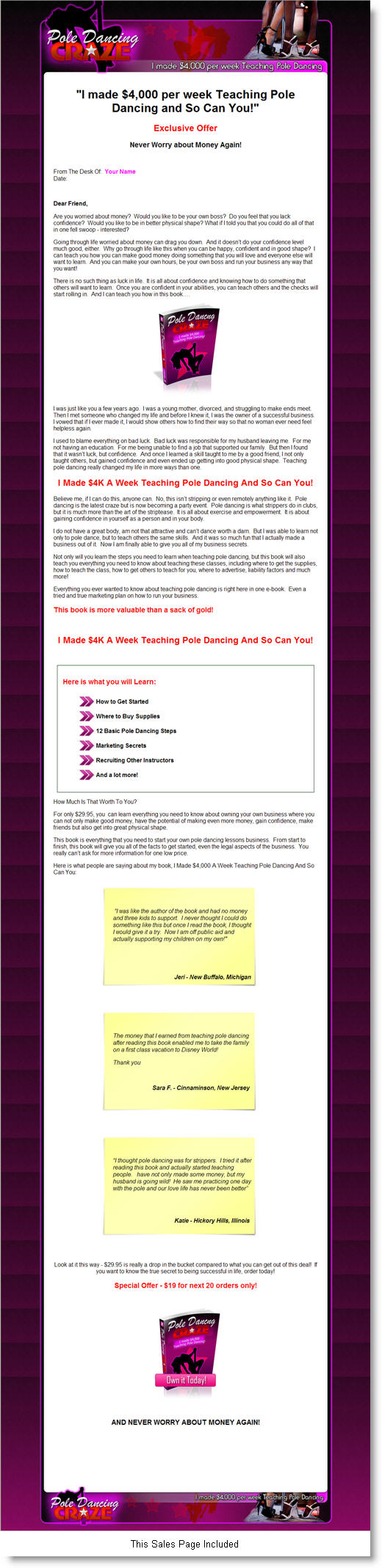 I do not have a great body, am not that attractive and can’t dance worth a darn. But I was able to learn not only to pole dance, but to teach others the same skills. And it was so much fun that I actually made a business out of it. Now I am finally able to give you all of my business secrets.
