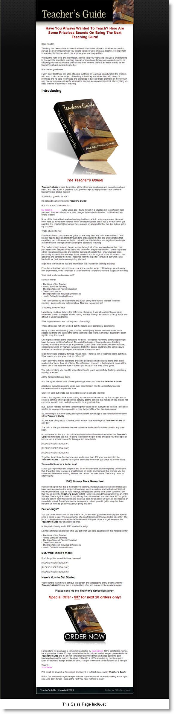 | Miscellaneous Graphics: | Standard salespage graphics |