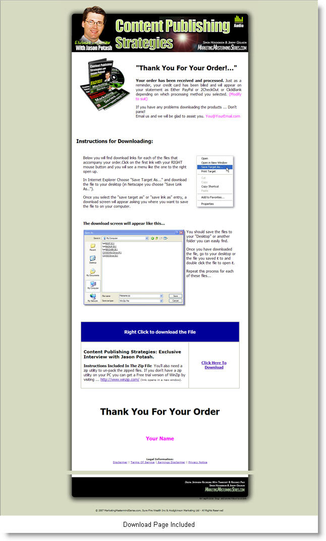 | Miscellaneous Graphics: | Standard salespage graphics |