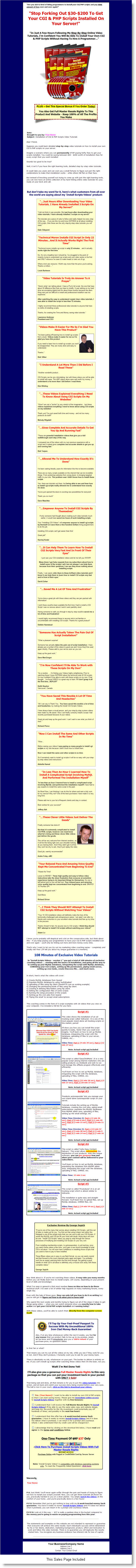 Essential Script Installation Video Tutorials (PLR)Following These Step-By-Step Online Video Tutorials, We Are Confident You Will Be Able To Install Your Own CGI & PHP...