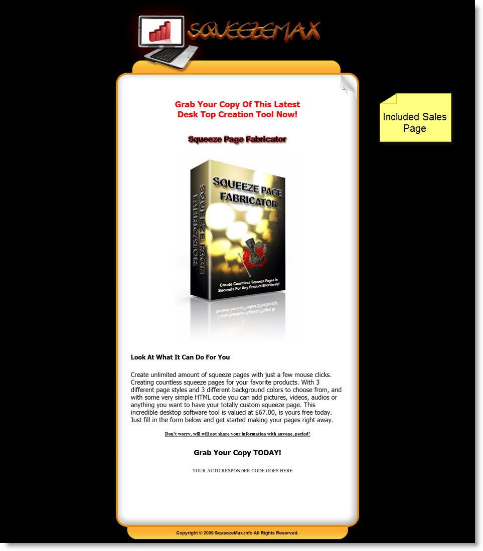 have your totally custom squeeze page. This incredible desktop software tool is
