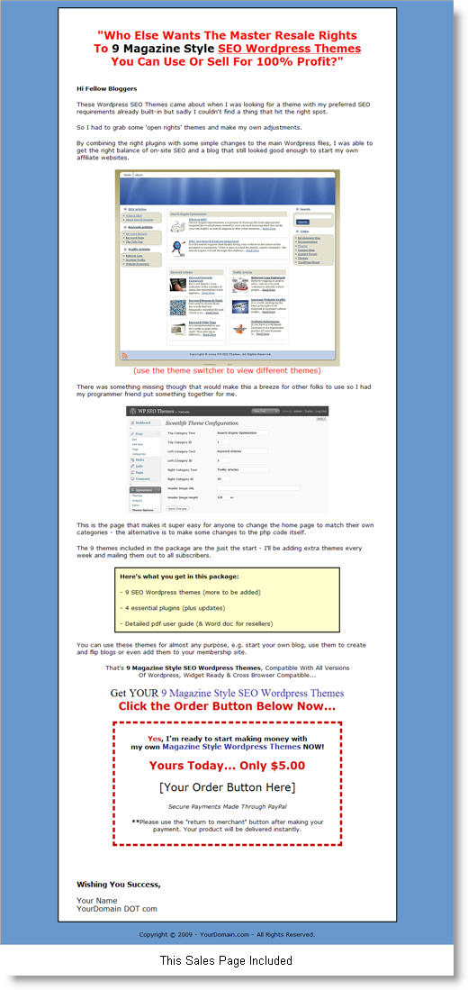 PLR Bonus Package WP Themes (PLR)10 Premium Wordpress Themes, and 10 High Quality Sales Page Themes.