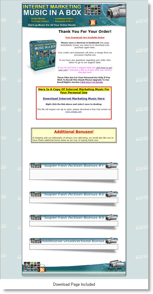 | Miscellaneous Graphics: | Standard salespage graphics |