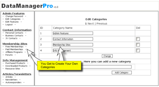 Data Manager Pro Allows You to Create your own categories.